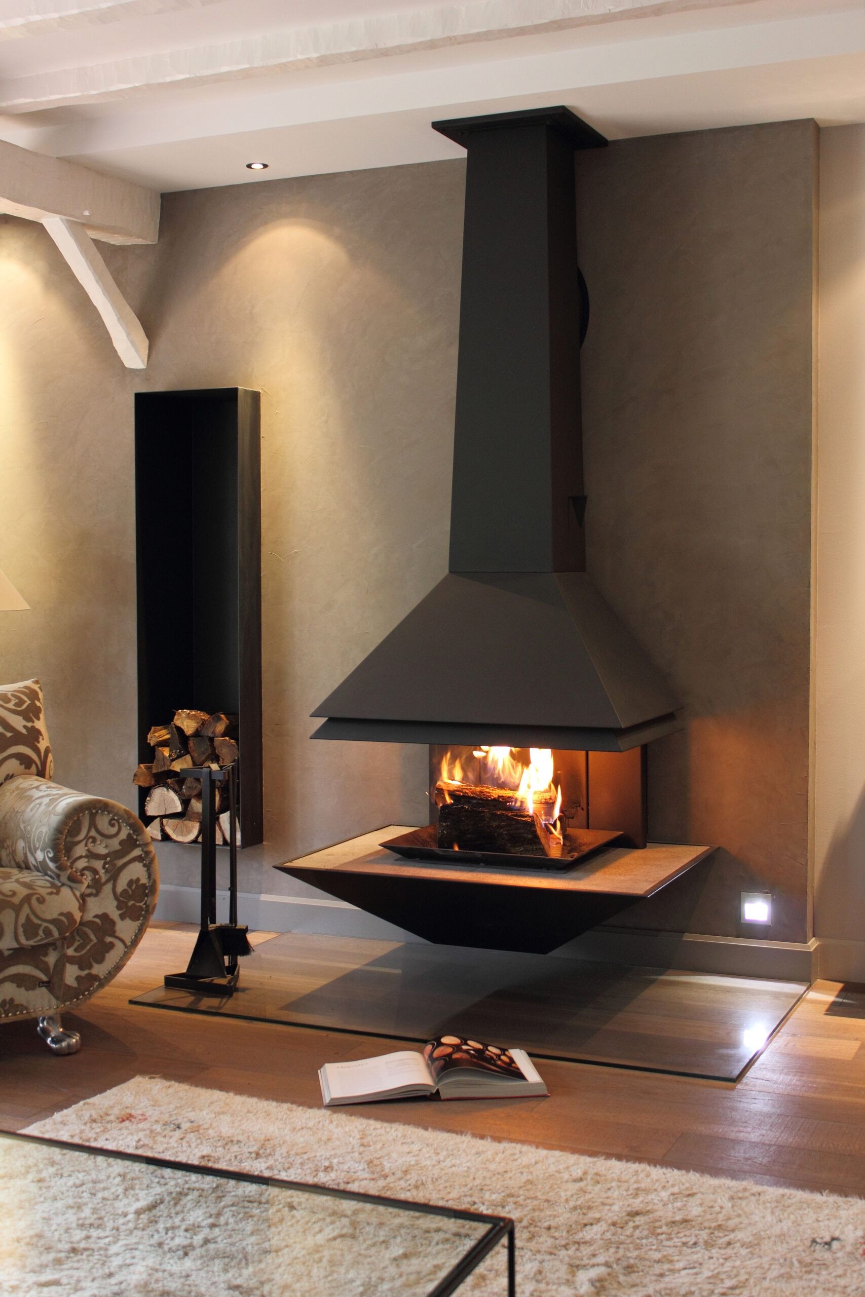 Cette cheminée place le feu en lévitation. C'est un véritable meuble à feu et un élément de décoration en forme pyramidale.