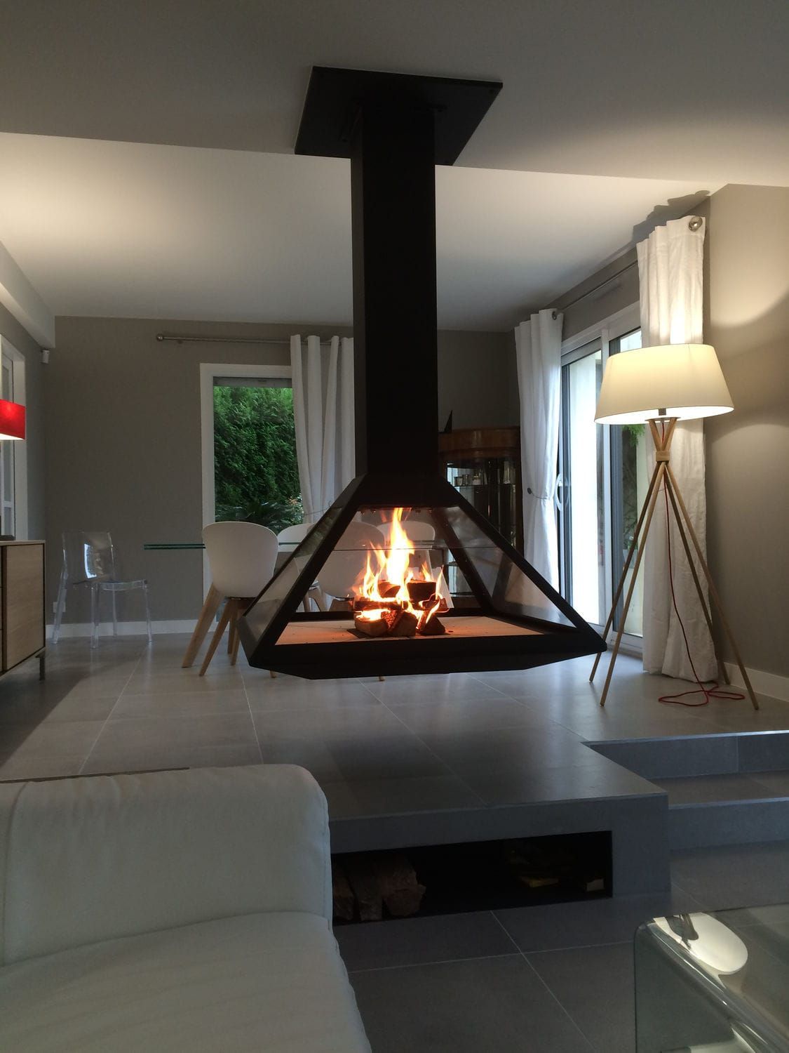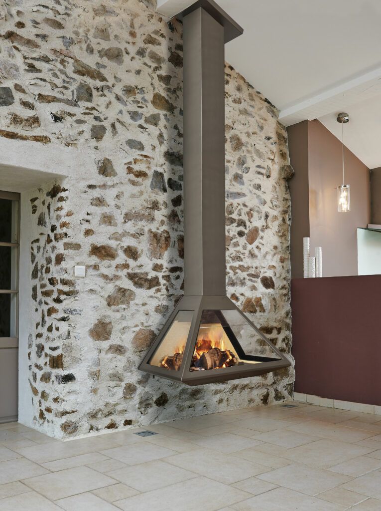 Cette cheminée centrale ouverte place le feu au cœur de la pièce avec une vision de 360°.