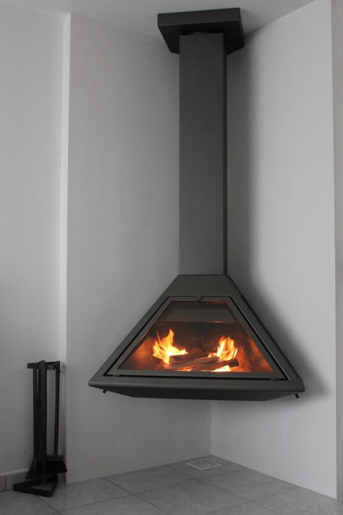 En plus des cheminées, Vyrosa propose également des poêles à bois suspendus. Ces poêles au design contemporain et épuré sont un atout majeur pour la décoration de votre intérieur. Leur performance de chauffage est optimale grâce à une combustion performante des bûches et leur installation est facilitée par leur caractère suspendu.